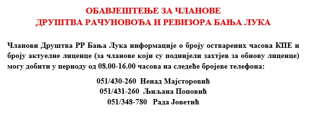 Вијести РЕЗУЛТАТИ ИСПИТА ЗА СТИЦАЊЕ ПРОФЕСИОНАЛНО – СТРУЧНОГ ЗВАЊА „СЕРТИФИКОВАНИ ФОРЕНЗИЧКИ РАЧУНОВОЂА“ 07.12.2022