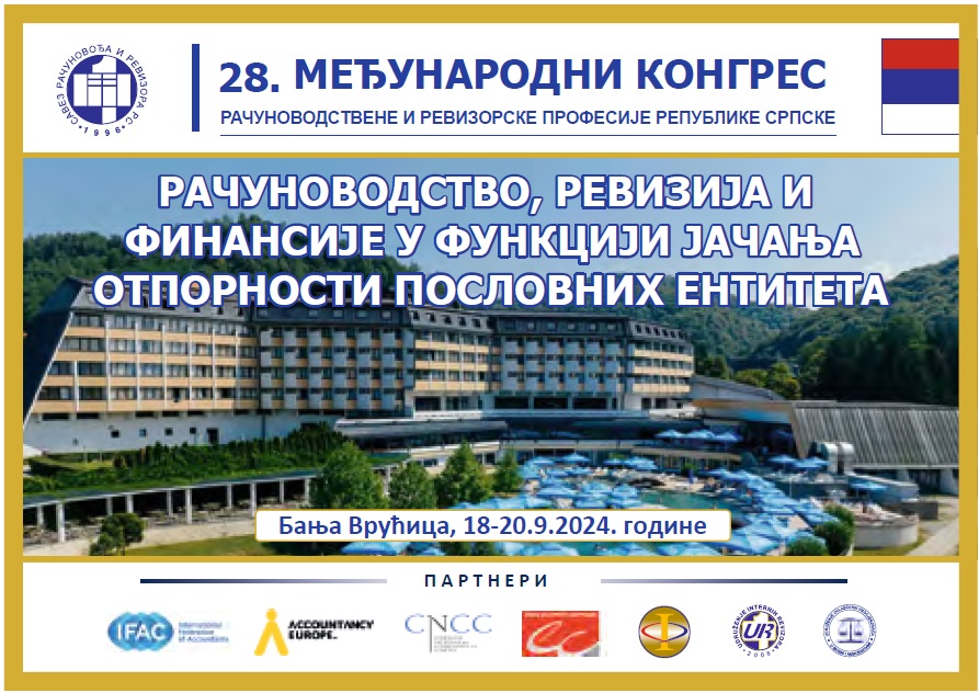 Савез рачуновођа и ревизора Републике Српске организује 28. Међународни конгрес рачуноводствене и ревизорске професије Републике Српске под називом: „РАЧУНОВОДСТВО, РЕВИЗИЈА И ФИНАНСИЈЕ У ФУНКЦИЈИ ЈАЧАЊА ОТПОРНОСТИ ПОСЛОВНИХ ЕНТИТЕТА“, који ће бити одржан у Бањи Врућици – хотел Кардиал 18., 19. и 20. септембра 2024. године.